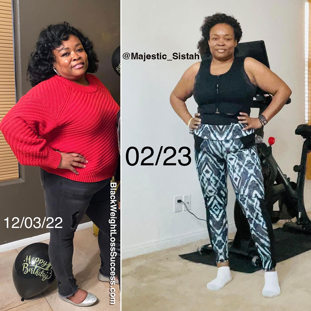 Transformation of the Day: LaTonya lost 59 pounds. After seeing an unflattering photo, she decided it was time to focus on her health, which led to a pre-diabetes diagnosis. She transformed by committing to the process, changing her eating habits, and using her Peloton bike/Peloton programs for exercise.
