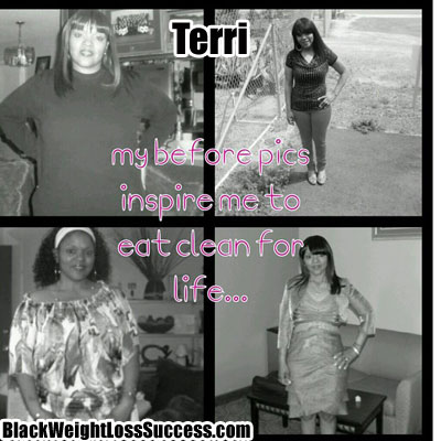 Today’s featured weight loss success story: Terri lost 58 pounds. This petite 5’2″ sista was able to improve her health after being diagnosed with kidney disease with the help of a supportive Facebook community. She committed herself to wellness and weight loss! Here is what she shared with us about her journey: